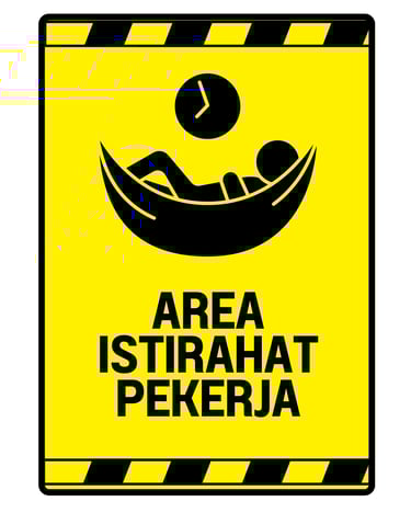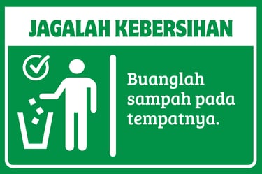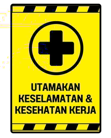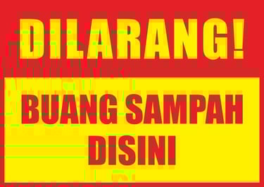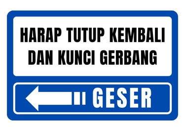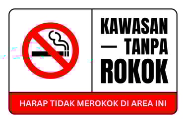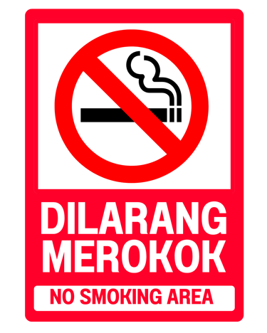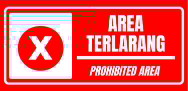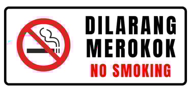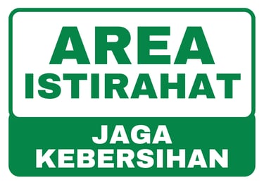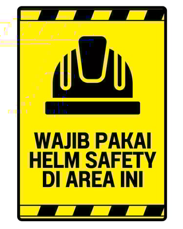 Sign peringatan dan larangan (contoh: Dilarang Merokok, Area Wajib Helm, dll)